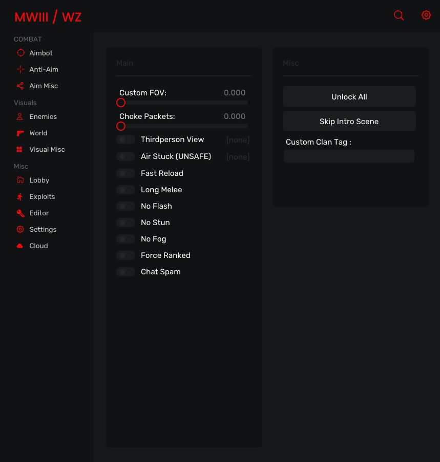 Exploits [+] Custom FOV [+] Third-Person [+] Air Stuck [+] Chat-Spam [+] Unlock All [+] Custom Clan-Tag
